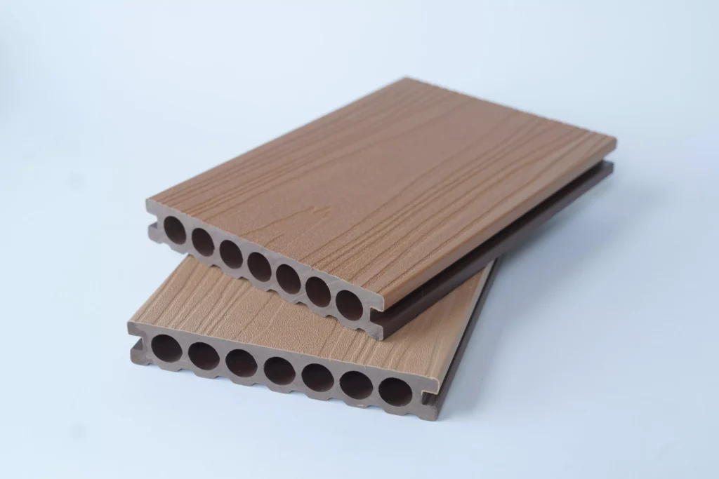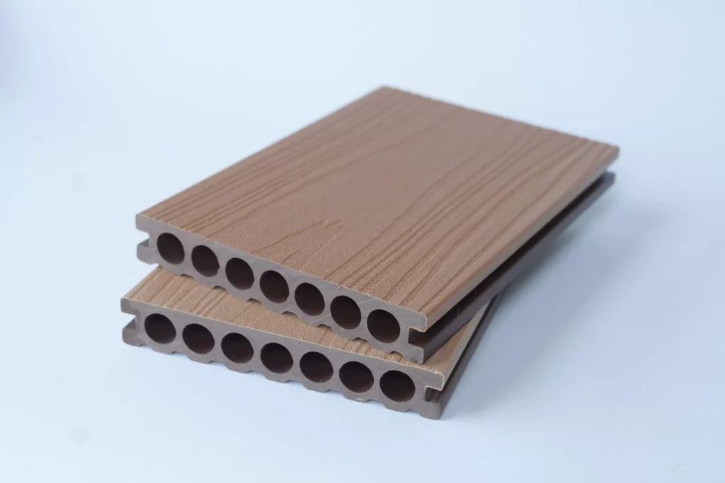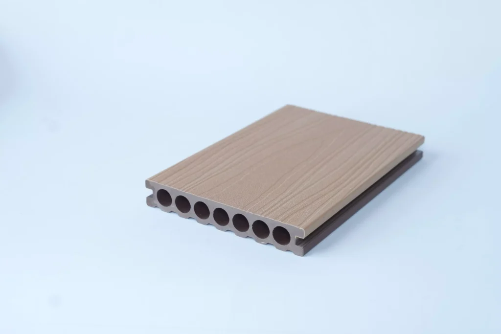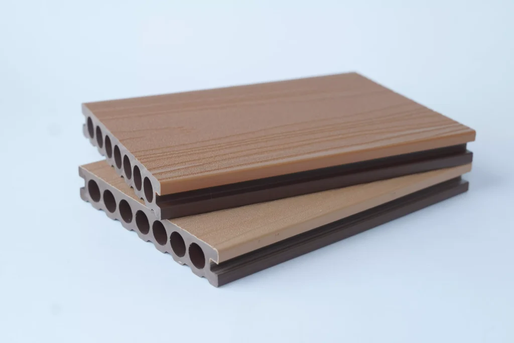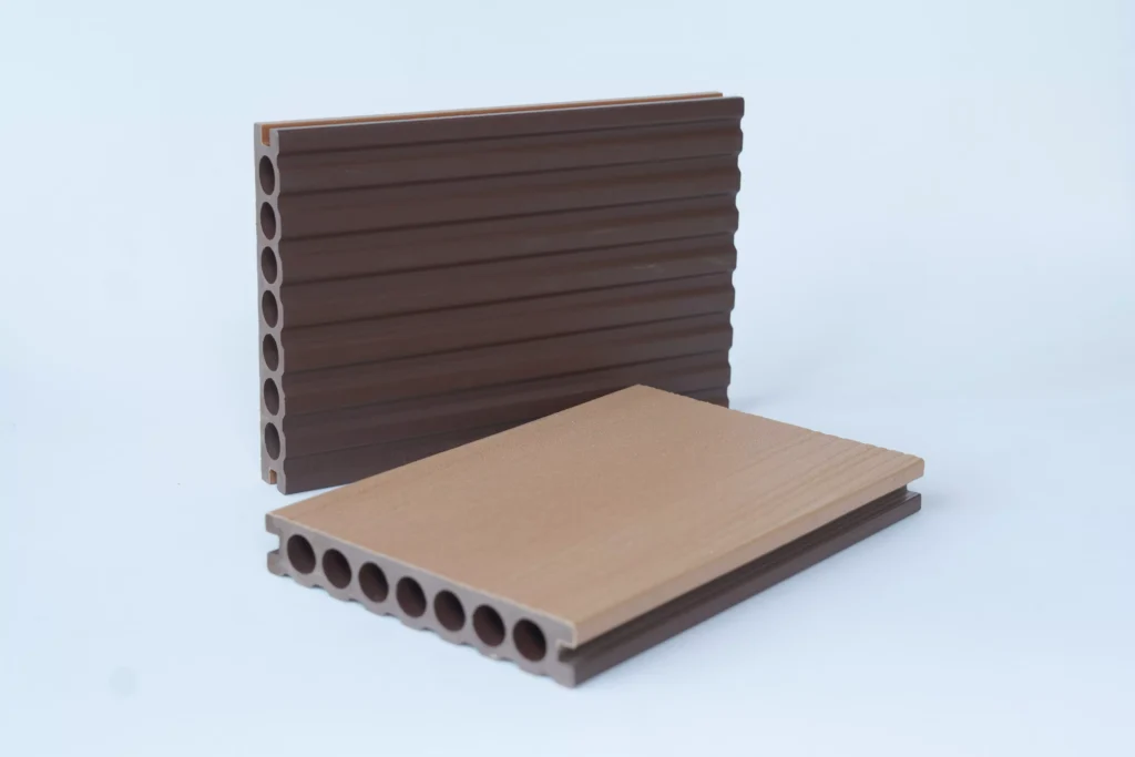 The 150×22mm round hollow WPC decking board features a 2nd generation co-extruded embossed surface, delivering a more realistic wood grain texture with enhanced color durability. Made from a blend of recycled wood fiber and premium-grade plastic, it offers the natural appearance of wood along with superior resistance to fading, staining, and moisture. The round hollow design ensures lightweight handling without sacrificing structural strength, making it an excellent choice for outdoor applications such as patios, balconies, pathways, and pool areas.